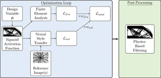 This research proposes a novel topology optimization method using neural style transfer to simultaneously optimize both structural performance for a given loading condition and geometric similarity for a reference design. For the neural style transfer, the convolutional layers of a pre-trained neural network extract and quantify characteristic features from the reference and input designs for optimization. The optimization analysis is evaluated as a single weighted objective function with the ability for the user to control the influence of the neural style transfer with the structural performance. As seen in architecture and consumer-facing products, the visual appeal of a design contributes to its overall value along with mechanical performance metrics. Using this method, a designer allows the tool to find the ideal compromise of these metrics. Three case studies are included to demonstrate the capabilities of this method with various loading conditions and reference designs. The structural performances of the novel designs are within 10% of the baseline without geometric reference, and the designs incorporate features in the given reference such as member size or meshed features. The performance of the proposed optimizer is compared against other optimizers without the geometric similarity constraint.